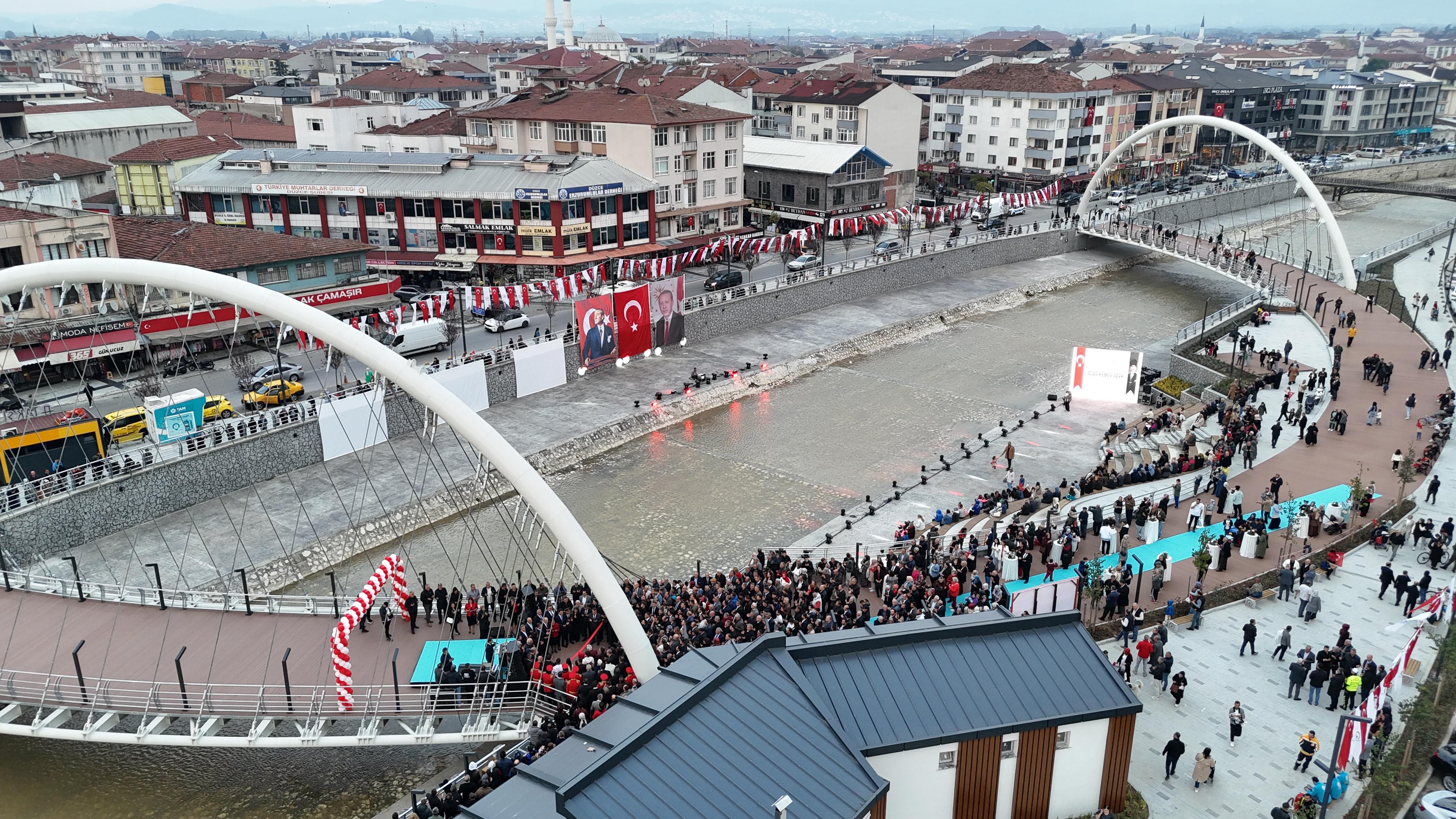 Yeni projede büyük mühendislik çalışmaları ve emek olduğunu kaydeden Özlü, “Sizlerin de gördüğü gibi bu büyük projede; çelik halatlar, dev boyutta tabliyeler, 400 tonluk köprü kemerleri, 109 tane çelik halatın taşıdığı iki köprü ve 10 metre genişliğinde 52 metrelik köprü yürüyüş yolu var. 8 şiddetinde depreme dayanıklı olarak inşa edilen bu eser, 100 yıllık su debisini hesaplayarak yapıldı” şeklinde bilgi verdi. Projede ayrıca 500 kişilik amfi, kafeterya, otopark ve dere içi yürüyüş yollarının bulunduğunu da sözlerine ekledi.