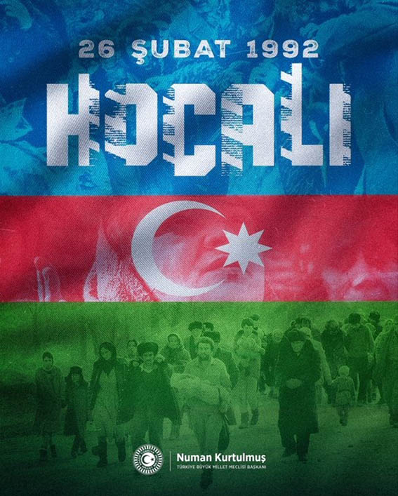 TBMM Başkanı Numan Kurtulmuş, kardeş Azerbaycan halkına 34 yıl önce gerçekleştirilen korkunç Hocalı katliamının yıldönümünde bir anma mesajı yayınladı.