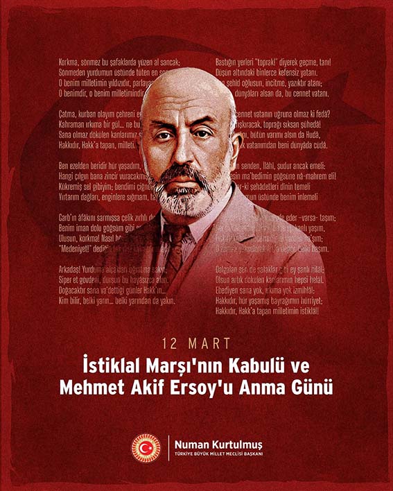Türkiye Büyük Millet Meclisi (TBMM) Başkanı Numan Kurtulmuş, İstiklal Marşı’nın Milli Marş olarak kabul edilişinin 105’inci yıl dönümü dolayısıyla bir mesaj yayınladı.
