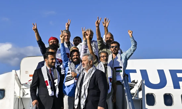 Sumud Filosu'ndaki aktivistler Türkiye’ye döndü. İsrail güçlerince müdahalede bulunulan Küresel Sumud Filosu teknelerinde yer alan 36'sı Türk 137 kişi İstanbul'a indi. Aktivistleri Ak Parti Milletvekili Hasan Turan karşıladı. Transfer için tahsis edilen Türk Hava Yolları uçağında, ABD, Birleşik Arap Emirlikleri, Cezayir, Fas, İtalya, Kuveyt, Libya, Malezya, Moritanya, İsviçre, Tunus ve Ürdün vatandaşları da yer alıyordu. Turan'dan önemli açıklamalar...