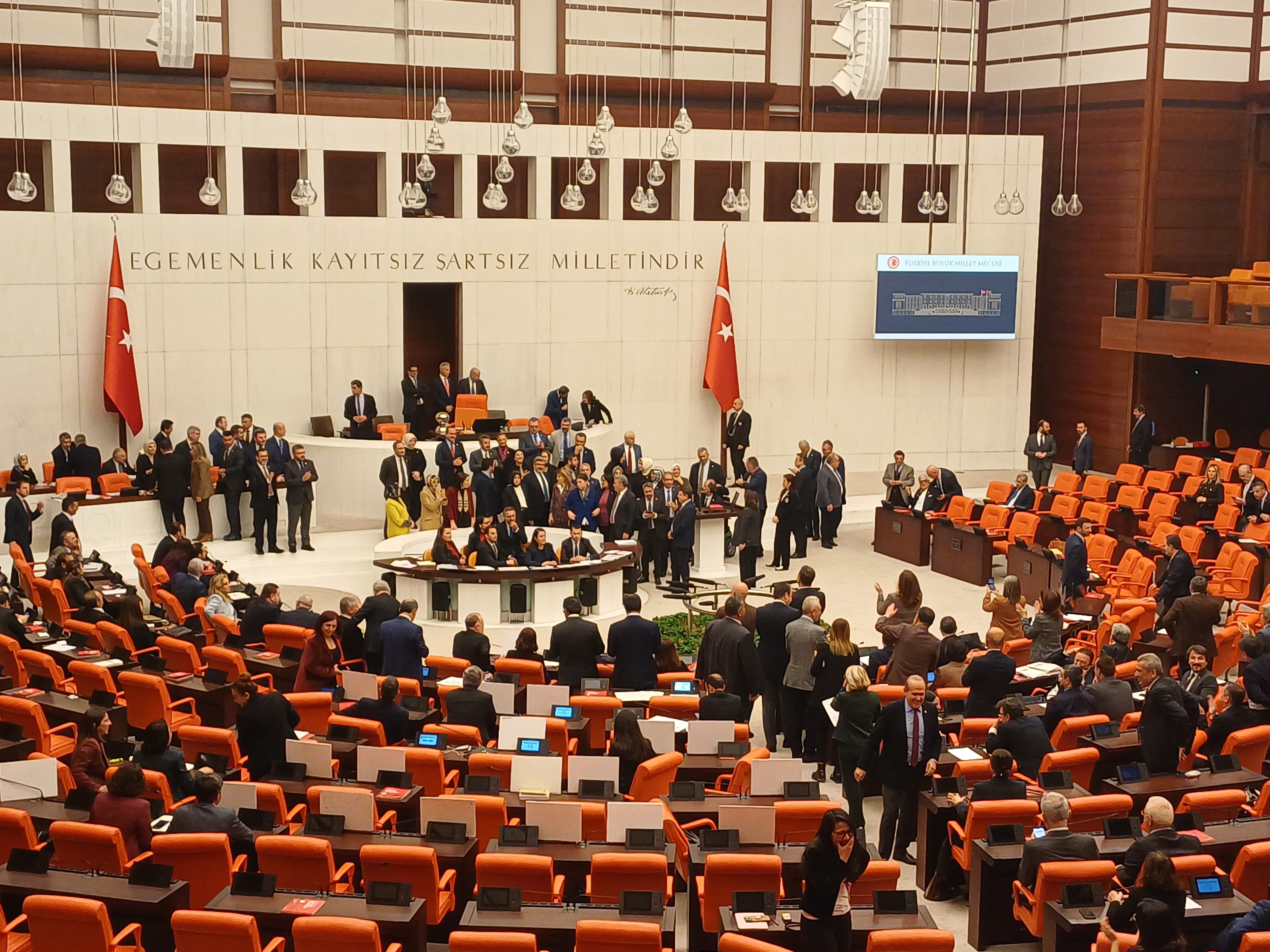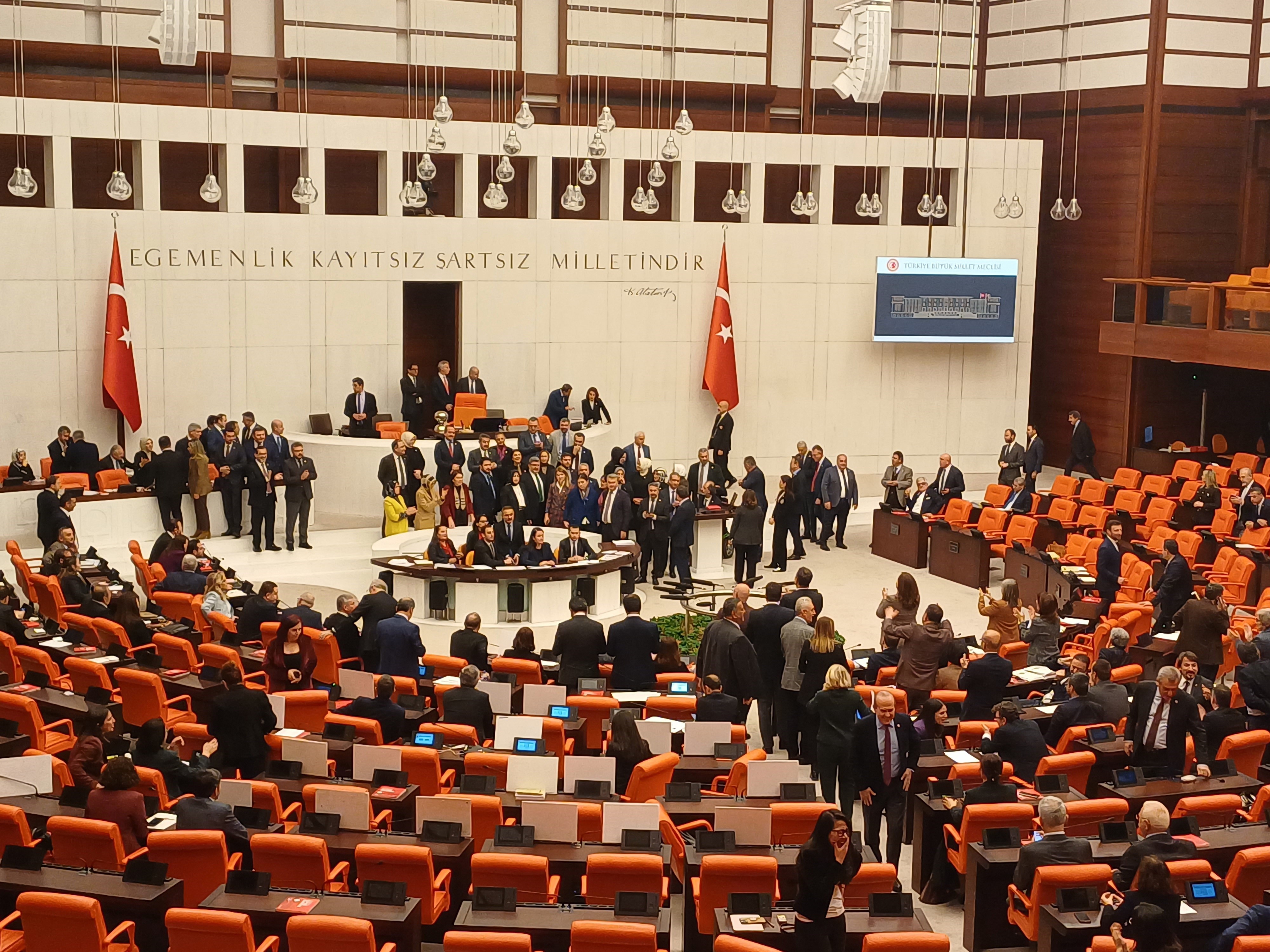 Daha sonra salona geri dönen AK Parti milletvekilleri, kürsünün önüne geçerek söz verilmemesine tepki gösterdiler. Bunun üzerine TBMM Başkanvekili Karaca oturuma ara verdi.