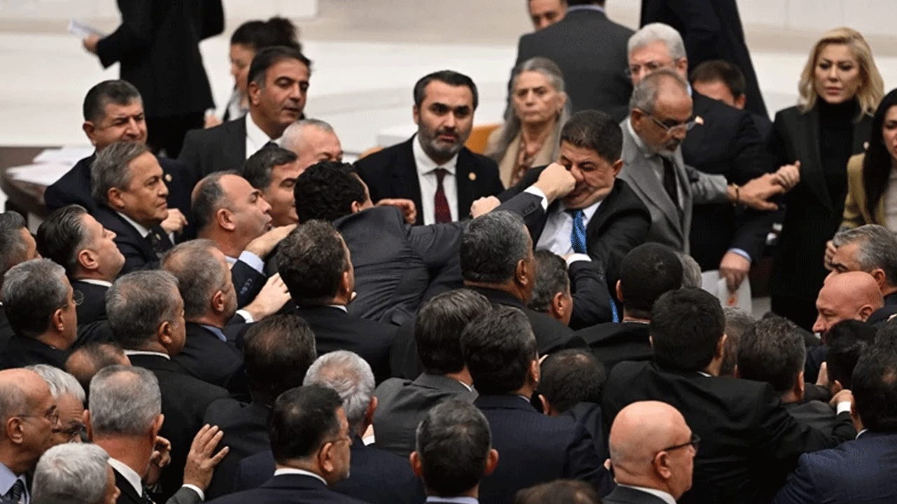 Milletvekilleri arasında çıkan sözlü tartışma, kısa sürede büyüyerek fiziksel müdahaleye dönüştü. Genel Kurul salonunun ortasında toplanan kalabalık grup arasında itiş kakış yaşandığı kameralara yansıdı.
