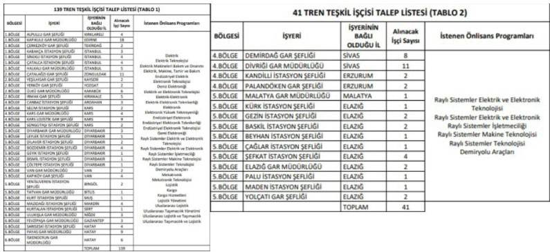 Türkiye Cumhuriyeti Devlet Demiryolları İşletmesi Genel Müdürlüğü, KPSS şartı ile İŞKUR üzerinden 180 personel alımı yapacağına dair ilan yayınlamasının ardından, başvuru yapmak isteyen adaylar, başvuru yapmak için gerekli şartları sorgulamaya başladı. Türkiye Cumhuriyeti Devlet Demiryolları'nın, 180 tren teşkil işçi alımı yapacağını duyurmasının ardından başvurular başladı.