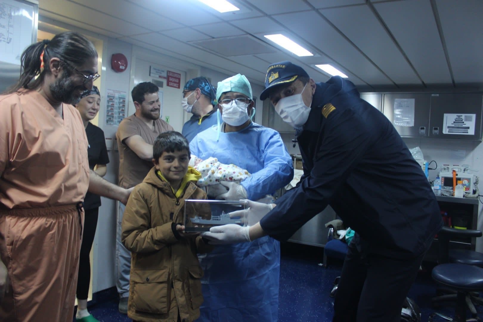TCG Bayraktar'da muhteşem anlar! Depremzede kadının kız çocuğu dünyaya geldi