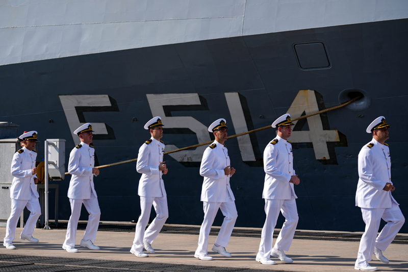 Korvetin limana aborda olması sırasında limandaki diğer gemiler silistrelerle selamlama yaptı. Korvetteki 140 personel de tören alanına inerek komutanları selamladı.