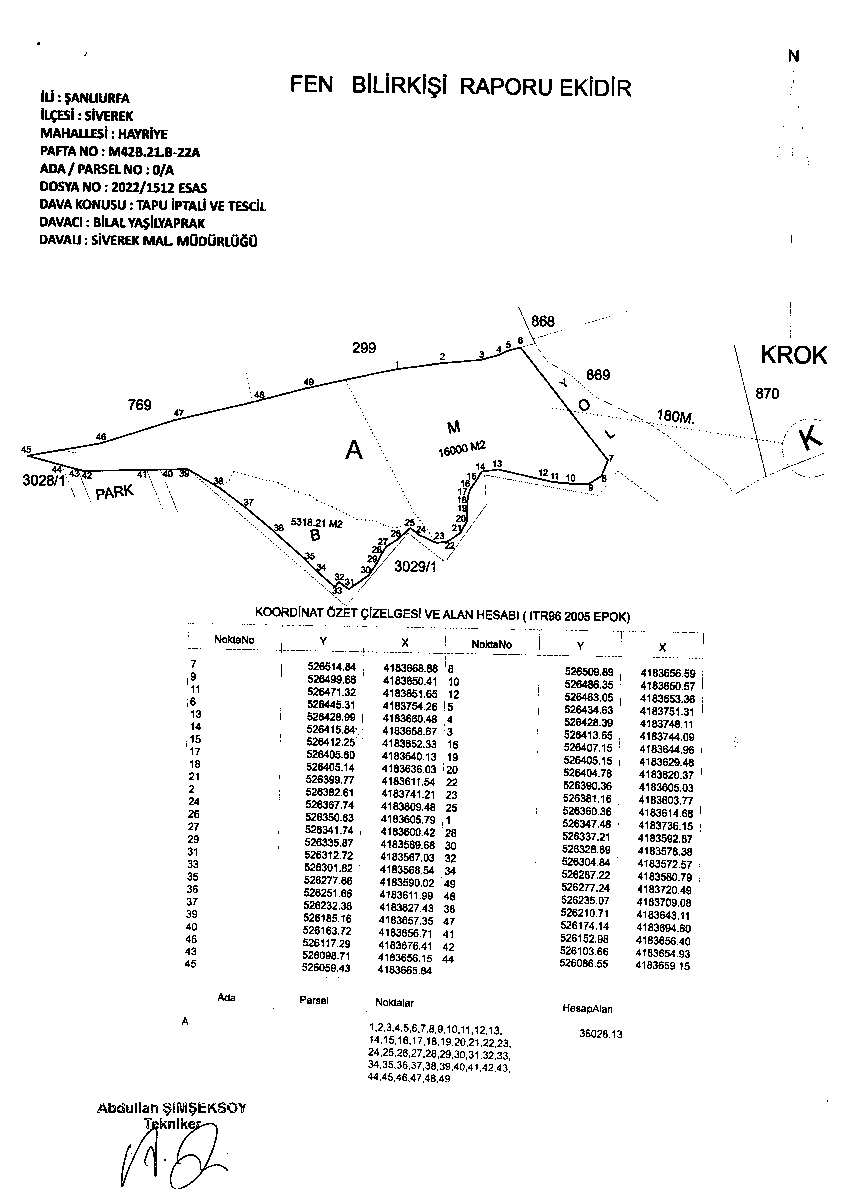 Davacı tarafından davalı aleyhine, Dava konusu taşınmaz: Şanlıurfa ili Siverek İlçesi Hayriye Mahallesi 299 ve 769 parsel sayılı taşınmazların güneyinde 3029 ada 1 parsel sayılı taşınmazın ise kuzeyinde yer alan tapu harici alan ile ilgili olarak mahkememizde tapu iptali ve tescil davası açılmış olup yargılamanın halen mahkememizin 2022/1512 Esas sayılı dosyası üzerinden yürütüldüğü, ilan tarihinden itibaren (mahallinde 3 kez yapılacak ilanın sonuncusundan itibaren) 3 ay içerisinde bu yerde hak iddia edenler tarafından veya tescil koşulları gerçekleşmediğinden bahisle itiraz edilmediği takdirde bu yerin davacı adına tesciline karar verileceği M.K'nun 713 maddesi uyarınca ilan olunur.