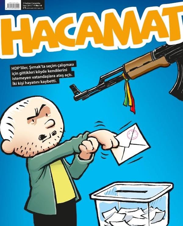 Ayrıca kapakta “HDP’liler Şırnak’ta seçim çalışması için gittikleri köyde kendilerini istemeyen vatandaşa ateş açtı. İki kişi hayatını kaybetti.” diye yazmaktadır.