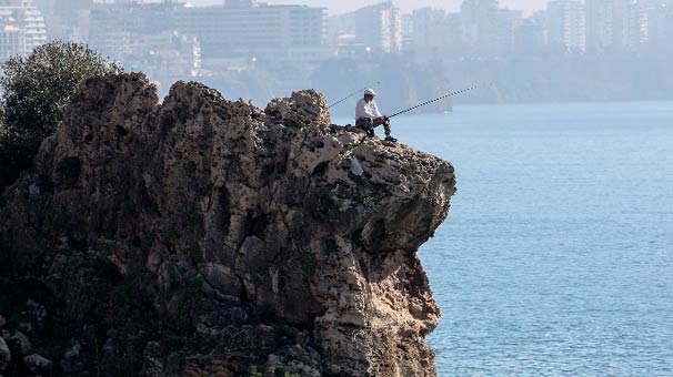 Antalya'da, kentin denizle buluştuğu her noktada olta balıkçılığı yapanları görmek mümkün. Amatör bir balıkçının 40 metre yüksekliğindeki falezlerin uç noktasına giderek balık tutmaya çalışması, ilginç görüntü oluşturdu. Konyaaltı varyantı başlangıcında bulunan kaya parçasının üstüne çıkarak oltasını 40 metreden sallayan balıkçı, gün boyunca balık avladı. Balık tutmak uğruna tehlikeye aldırmayan vatandaş, saatlerce oltasına balık takılmasını bekledi.