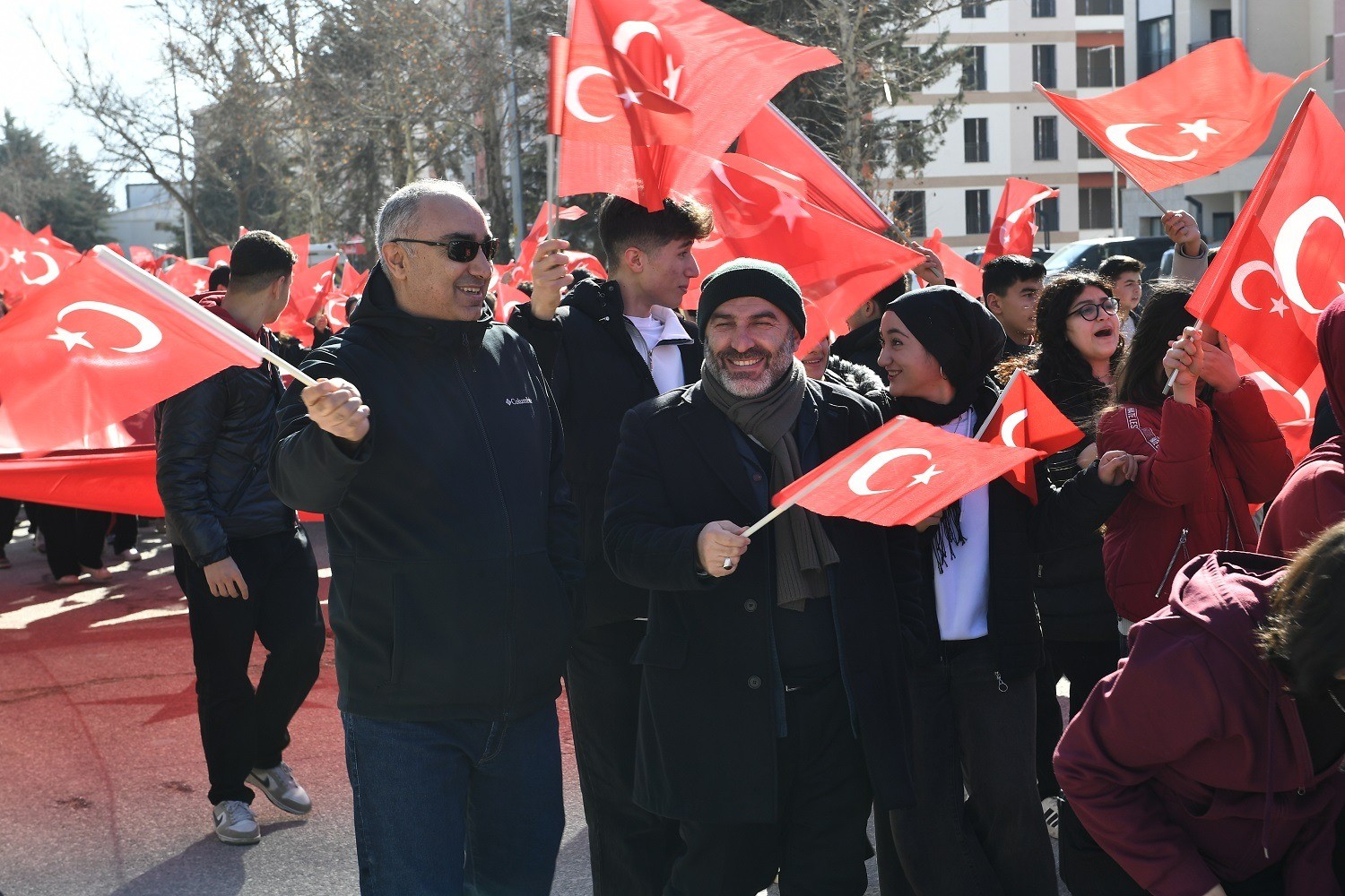 Yeşilyurt Belediyesi Gençlik ve Spor Hizmetleri Müdürlüğü tarafından organize edilen etkinliğe, Akmercan Anadolu Lisesi öğretmenleri ve öğrencileri de destek verdi. Okullarından Beylerderesi Şehir Parkı’ndaki Savaş Müzesi’ne kadar Türk bayrakları eşliğinde yürüyen öğrenciler, vatan ve bayrak sevgisini gururla sergiledi.