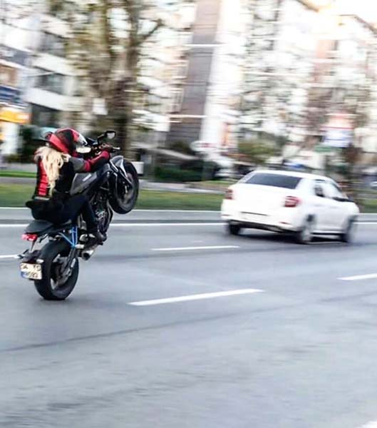Beşiktaş Barbaros Bulvarı ve tünellerde bir motosikletli kadın, akan trafikte motosikletle tek teker üstünde giderek herkesin canını tehlikeye atmıştı.