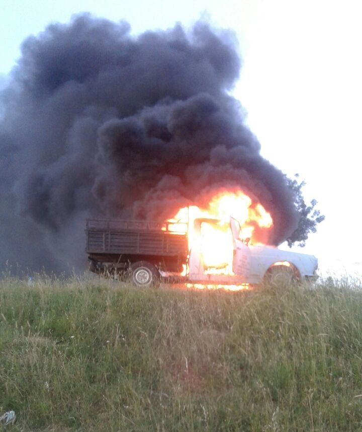 Seyir halindeyken motor kısmından alev alan kamyonet tamamen yandı.Alevleri farkeden sürücü aracı kenara çekerek itfaiye ekiplerine haber verdi.