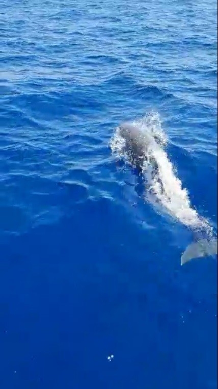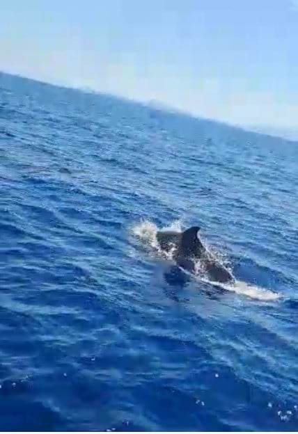 Menteşe ilçesine bağlı Akyaka ile Sedir Adası açıklarında Tekneye eşlik eden erkek, dişi ve bir yavru yunus tekne sahibi tarafından görüntülendi. Görüntülerde, uzun süre yetişkin yunuslar üstte, yavru yunus balığı da anne ve babasının korumasında tekneye eşlik ettiği görüldü.