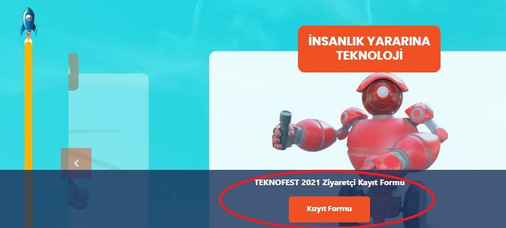 TEKNOFEST'e gitmek isteyenler öncelikle teknofest.org adresine giriş yapmalılar. Festivalin web sitesine girdiğinizde anasayfada 'TEKNOFEST 2021 Ziyaretçi Kayıt Formu" ifadesi yer alıyor. Buna tıklayıp gerekli adımları takip ederek işleminizi tamamlayabilirsiniz.