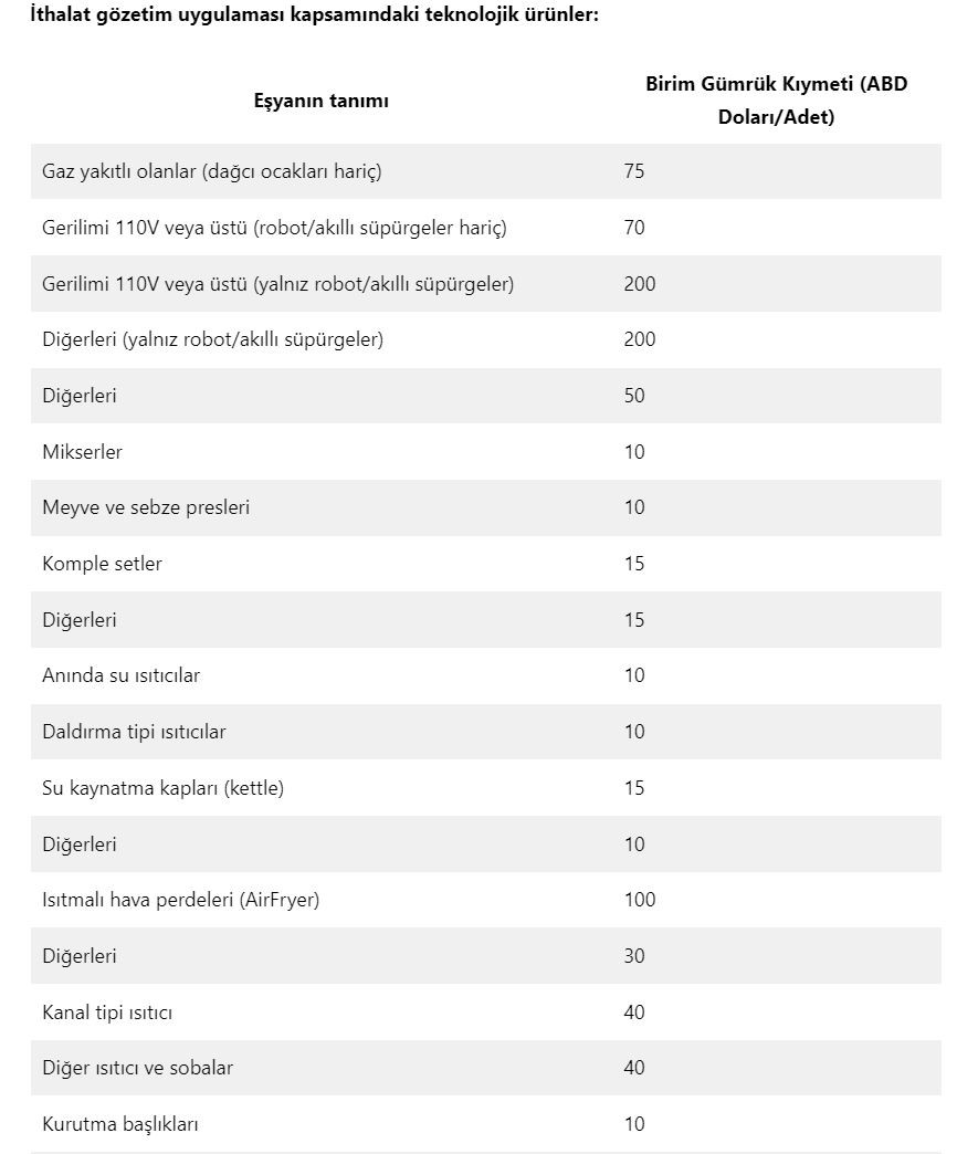 Akıllı telefonlar için getirilen ithalat gözetim uygulaması kararı iptal iptal olmasına rağmen, diğer tüm teknolojik ürünlere zam kararı alındı. Özellikle ucuz robot süpürgeler ve AirFryer(hava fritözü) fiyatları zamlanacak.