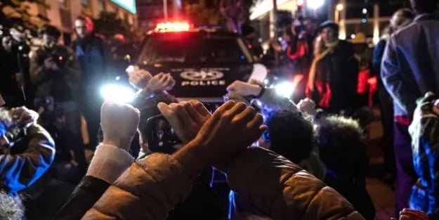 Eylemciler, İsrail'in Gazze Şeridi'ne yönelik saldırılarını protesto ederek ateşkes çağrısında bulundu. İsrail polisi, göstericilerin etrafında konuşlandı.
