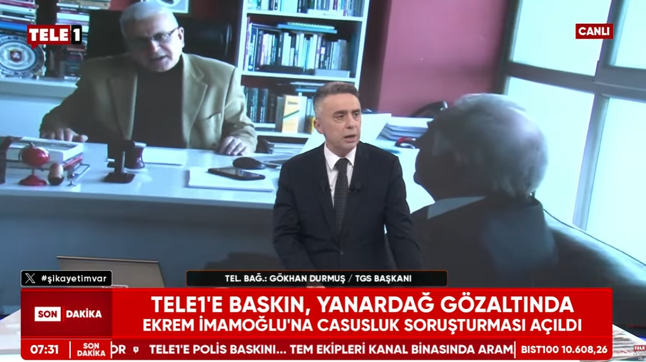 TELE1’de Sabah Pusulası programını sunan Gökhan Kayış, TELE1 TV’ye operasyonu canlı yayında duyurdu. Sabah erken saatlerde TEM ekiplerinin kanala geldiğini ve arama yapıldığını ifade etti. Gökhan Kayış mahkeme kararıyla TELE1 Genel Yayın Yönetmeni Merdan Yanardağ’ın evinde ve ofisinde arama yapıldığını Merdan Yanardağ’ın ise gözaltına olabileceğini açıkladı.