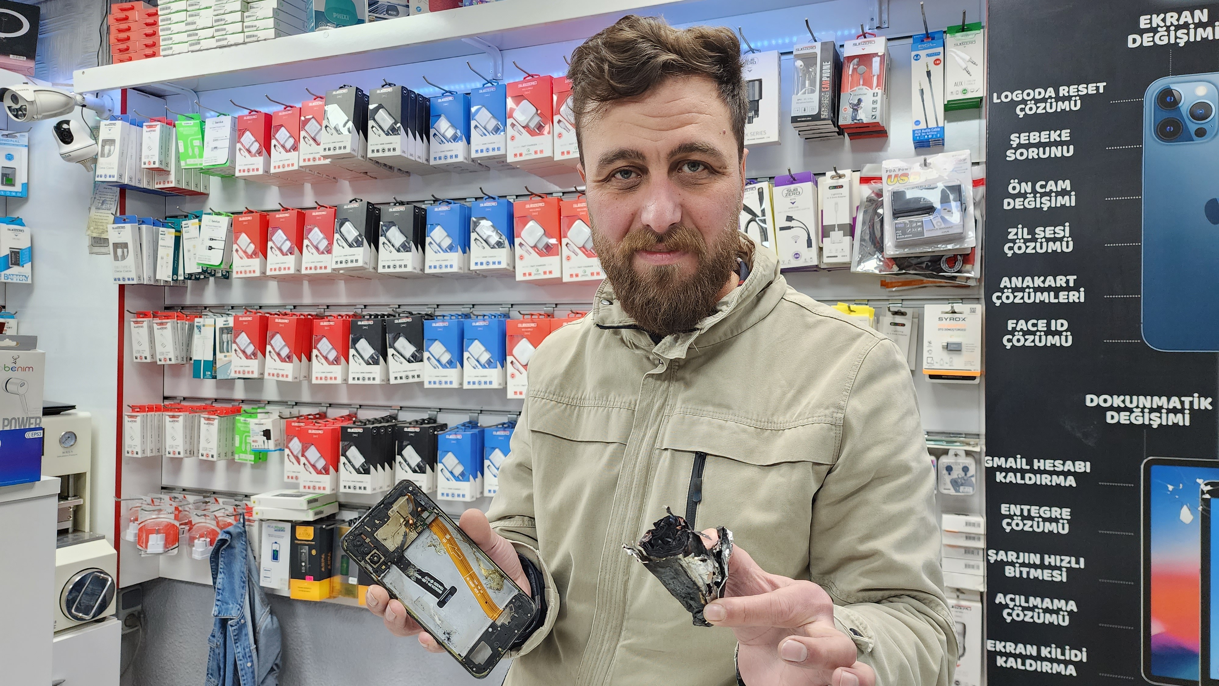 İşyeri sahibi Gökhan Gündoğan, çok korktuğunu söyleyerek, “Başka bir telefonun temizliği için uğraşıyordum ve ne olduysa telefon bir anda patladı. Ben de korktum. Önce bir kaçtım, sonra geldim. Baktım batarya patlamış, alıp yere attım, dışarıya fırlattım. Telefonlara dikkat etmek lazım. Ben bile neden patladığını anlayamadım” dedi.