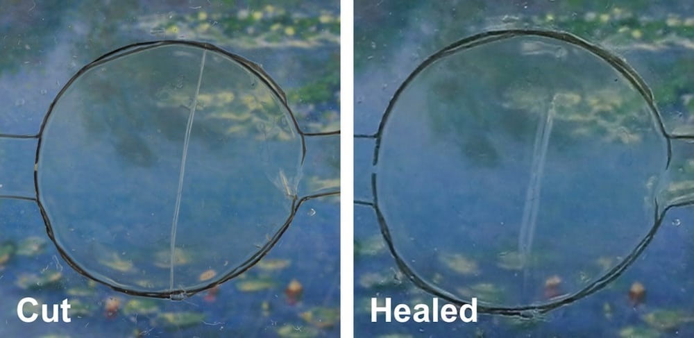 Araştırmacılar yaptıkları deneyde, ekran üzerine atılan kesikler ve çizikler 24 saat içinde kendi kendini yenilediğini kanıtladılar. Polimer ve iyonik tuz içeren ve kendi boyutunun 50 katına kadar uzayabilen bir malzeme kullanılan deney ekranında, yüklü iyonlar ve kutup molekülleri arasındaki etkileşim sonrasında bu iyon ve moleküller malzemeyi yenilemek için bu etkileşimi kullandıkları görüldü.