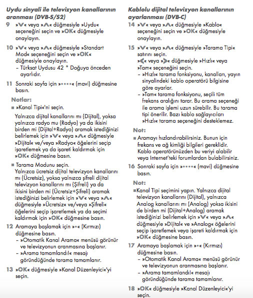 Daha sonrasında karşımıza gelen ekranda “Programları ayarlamak için giriş kaynağını seçin” başlığı altındaki seçeneklerden Uydu bölümünü seçip İleri butonuna tıklıyoruz. Gelen ekranda ”Ayarlama seçeneğini belirleyin” başlığı altındaki seçeneklerden Şifreli Programları Atla ve Ağ Arama kutucuklarını işaretleyip Başlat butonuna tıklıyoruz. Programları ayarlamak için uyduyu ve ayarlarını kontrol edin başlığı altında yer alan seçeneklerde “Uydu Ayarını Değiştirin” butonuna tıklayıp, Uydu: TURKSAT 42.0E LNB TÜRÜ: 9750/10600 olarak girdikten sonra İleri butonuna tıklıyoruz. “Oto Ayarlama tamamlandı.” başlığı altında bir ekran gelecektir.