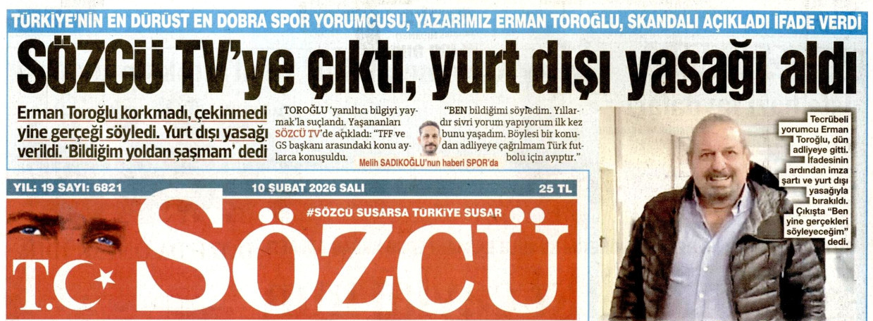 Bilindiği üzere Sözcü, Galatasaray Kulübü Başkanı Dursun Özbek ile Türkiye Futbol Federasyonu Başkanı İbrahim Hacıosmanoğlu arasında bir görüşme olduğunu iddia eden Erman Toroğlu’nun bu söylemlerine hiç değinmemiş, Toroğlu’nun sadece “Sözcü TV’ye çıktığı için ceza aldığını” ileri sürmüştü.