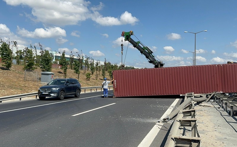 TEM Otoyolu'nda Edirne istikametine seyir halinde olan tır, Çatalca mevkisinde sürücüsünün direksiyon hakimiyetini kaybetmesi üzerine kontrolden çıktı. Refüjdeki bariyere çarparek devrilen aracın bir kısmı karşı yöndeki bir şeridi kapattı.