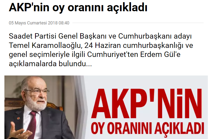 2018'de Cumhurbaşkanlığı seçiminin ikinci tura kalacağını söyleyen Temel Karamollaoğlu, Erdoğan'a kaybettirmişti. Söylemlerinin hepsi yalan çıkan Karamollaoğlu aynı yalanlarını gündeme getirmekten utanmadı.