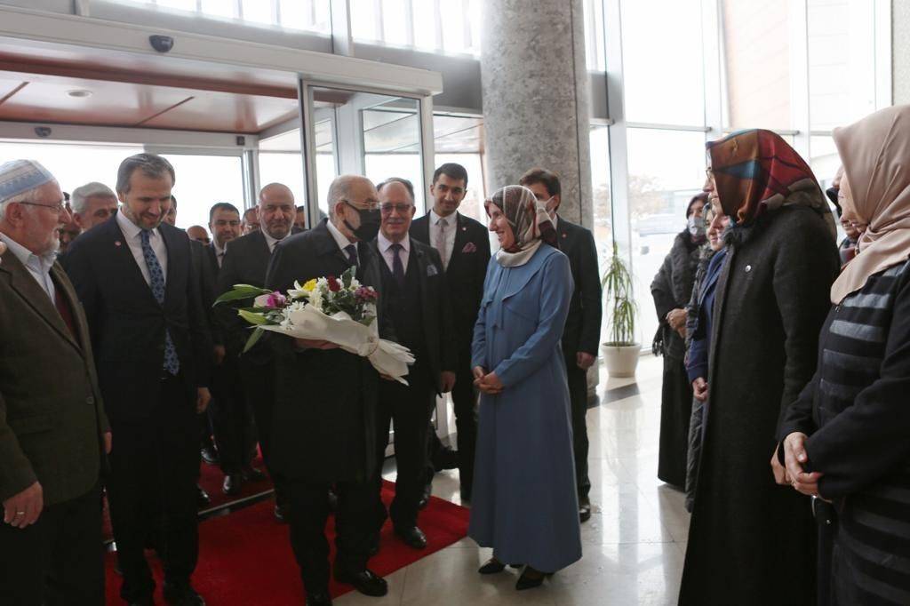 Saadet Partisi lideri Karamollaoğlu'nu parti genel merkezi önünde partililer karşıladı.