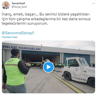 Türk Havacılık ve Uzay Sanayii (TUSAŞ) Genel Müdürü Temel Kotil, Twitter hesabından HÜRJET'e ilişkin paylaşımda bulundu.