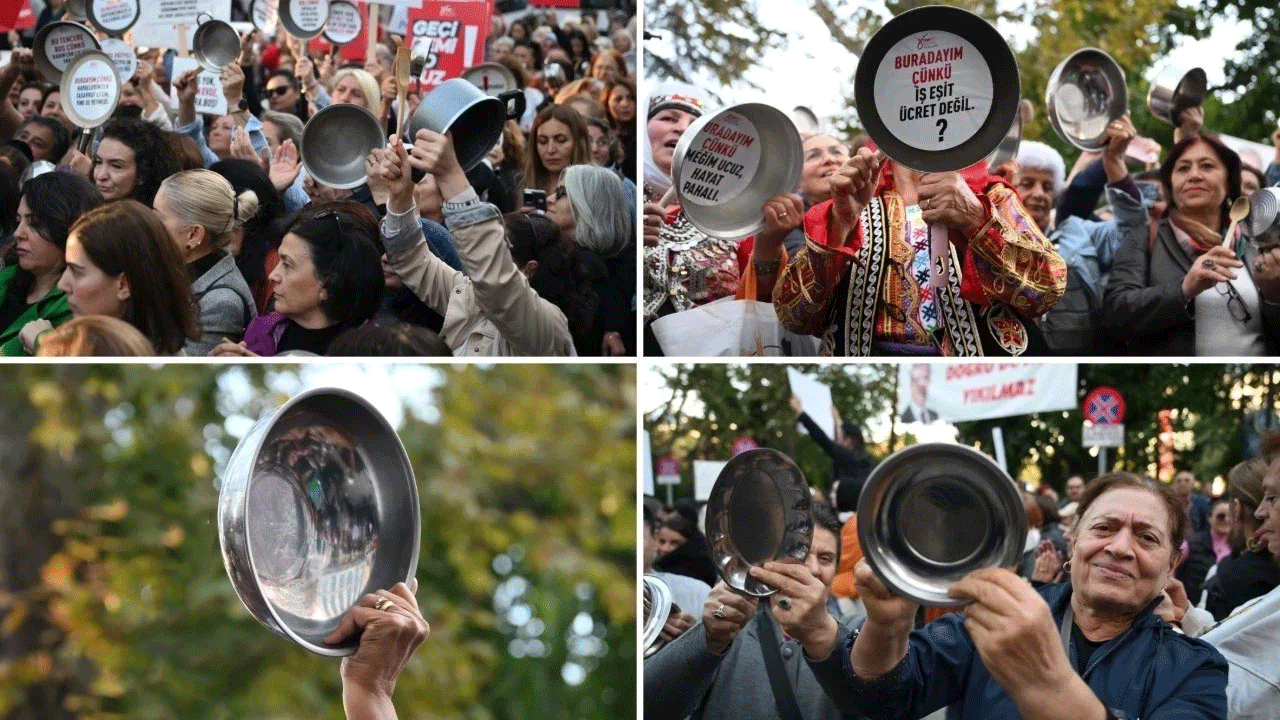 İzmir’de gerçekleştirilen eylemde CHP’li kadınlar, ellerinde tencere ve tavalarla caddeleri inletip adeta gürültü terörü estirdi.