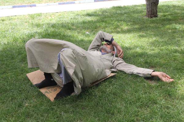 Hava sıcaklığının 40 dereceye ulaştığı Şanlıurfa'da sokaklar boş kalırken, nefes darlığı çeken yaşlılar ağaç gölgeliklerinde çimlere uzanarak vakit geçirdi.