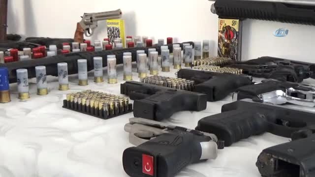 Mühimmatlarla birlikte adeta cephanelik gibi olan silahları sergileyen polis ekipleri, düğünlerde silah ve havai fişek atmamaları konusunda vatandaşları uyardı.