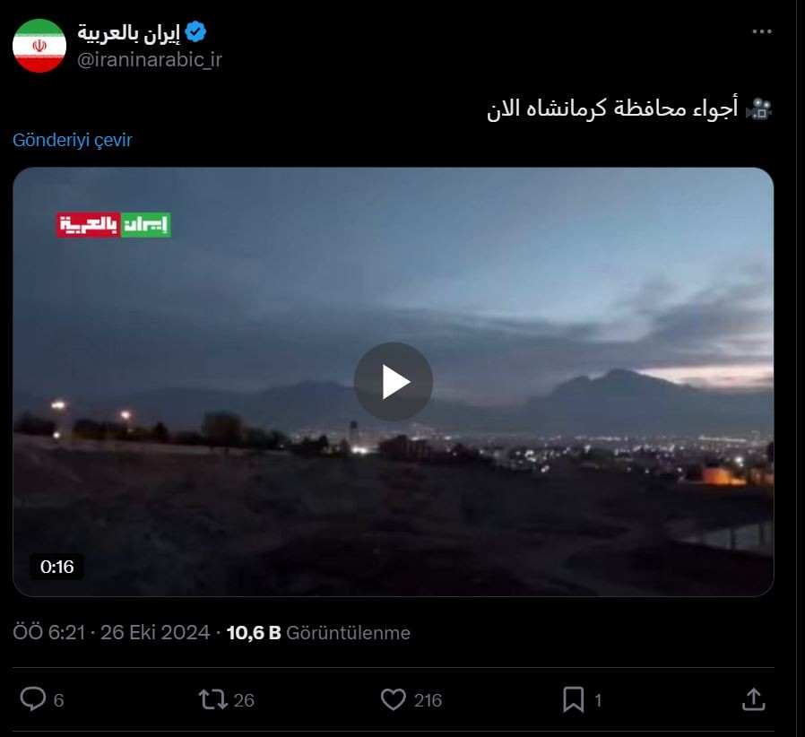 Katil İsrail'in İran'a yönelik göstermelik saldırısına ilişkin görüntüler gelmeye devam ediyor. Kirmanşah şehrinden gelen bir görüntü terör devleti İsrail'i yalanlıyor.