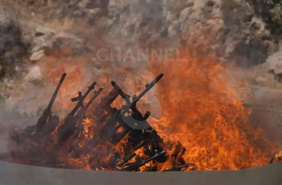 PKK'lılar burada ellerindeki silahları içinde ateş bulunan büyük bir kazana atarak imha etti.
