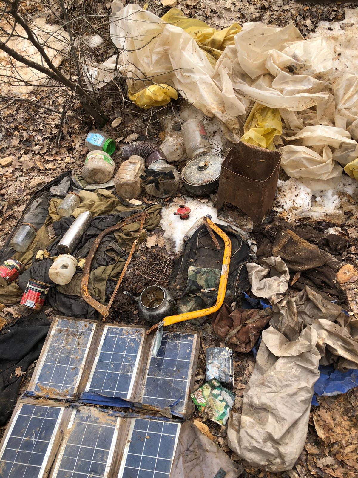 Sığınaklarda yapılan aramalarda, büyük LPG tüpü, 13 pil bloğu, 6 güneş paneli, akü, uyku tulumu, battaniye, sırt çantası, 10 metre branda, 2 testere ve çok miktarda yaşam malzemesi ele geçirildi.