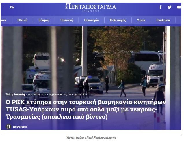4 masumun şehit düştüğü, 14'ünün de yaralandığı terör saldırısı İsraillileri olduğu kadar Yunan basınının bir kısmını da sevindirdi. Türkiye'deki her olumlu gelişmeyi büyük bir dikkatle izleyen yayın organlarından Pentapostagma, 'Kürtlerin Türklere çok büyük zarar vermeye hazırlandığını' ileri sürdü.