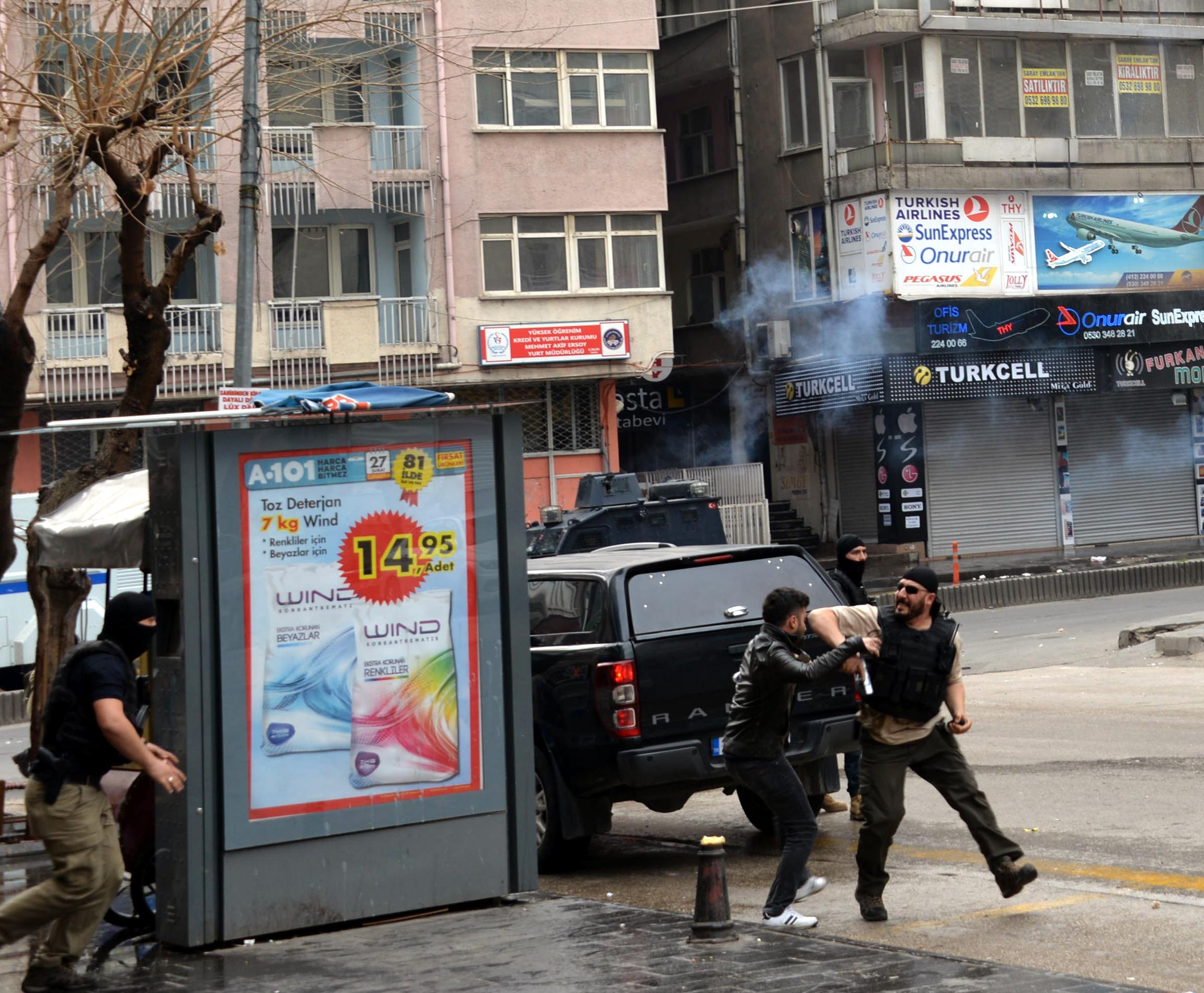 Cadde üzerinde polise taşlı saldırıda bulunanları dağıtmak için polis, zaman zaman havaya ateş açtı. Göstericiler ara sokaklara kaçarken, olaylar Ofis semti ile merkez Bağlar İlçesi'nde yer yer devam etti. Polis, olaylara karışan çok sayıda kişi de gözaltına aldı.
