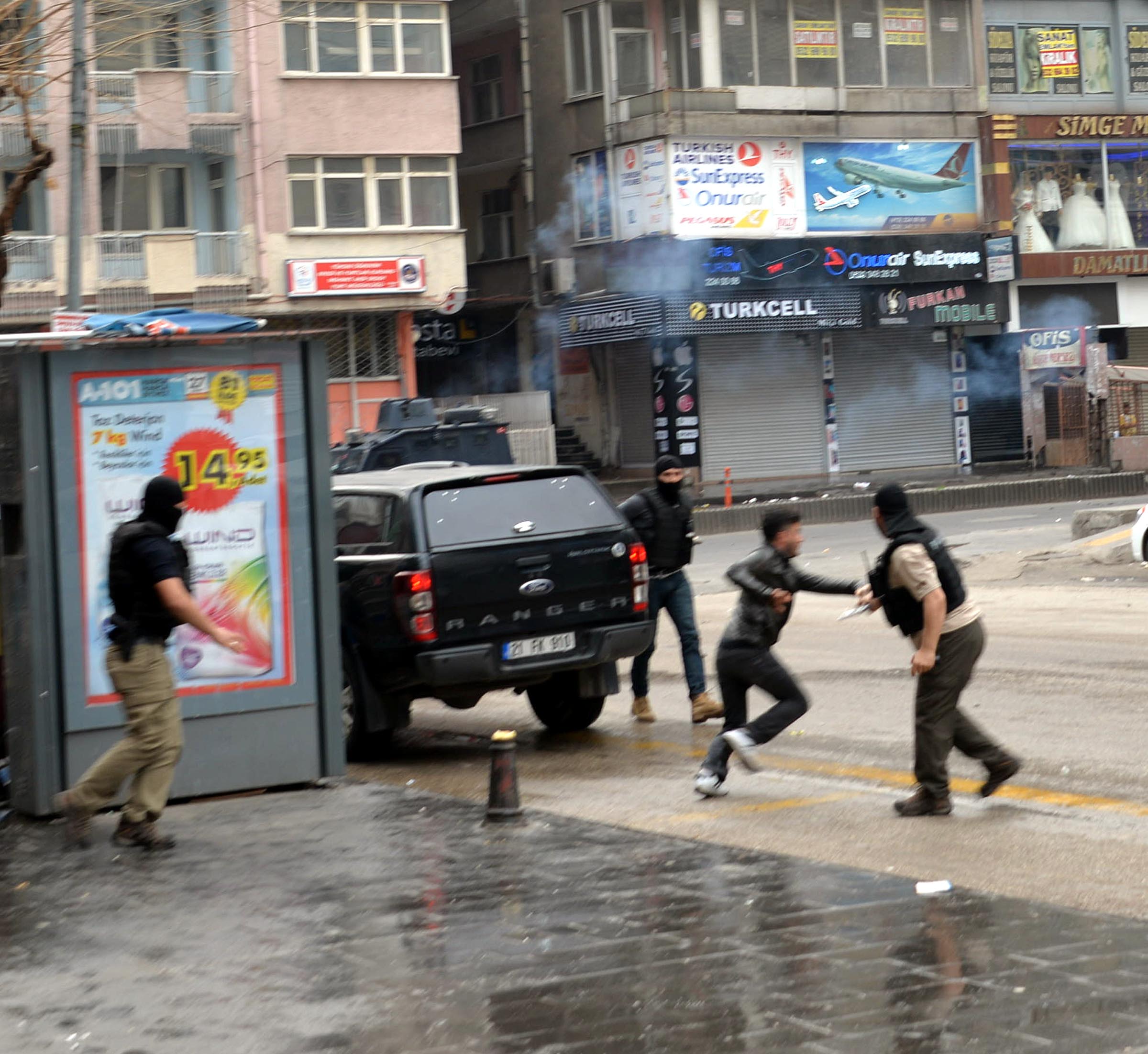 Cadde ve sokakları barikatla kapatmak isteyen PKK yandaşı gruplara polis gaz ve tazyikli suyla müdahale etti. Yaşanan olaylar sırasında polis, zaman zaman taş atanları dağıtmak için havaya ateş açtı.