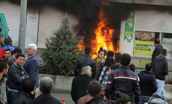 Çocukları Kobani’de hayatını kaybeden ailelerin konuşmaları, şiir ve Kobani ile ilgili konuşmaların yapılması esnasında, yüzleri kapalı bir grup belediye binası karşısında bulunan bir banka şubesi ATM’sine molotofkokteylleri ile saldırdı. Bunun üzerine kalabalık alandan dağılmaya başladı. Bazı partililer ise banka şubesine saldıranlara tepki gösterdi. Ara sokaklara kaçan grubun olay yerine gelen zırhlı araçları taşlaması üzerine polis gaz bombası ile müdahalede bulundu. Hakkari’deki gerginlik devam ediyor.
