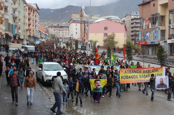 HDP'nin çağrısıyla 1 Kasım yürüyüşü için binlerce kişi Bulvar Caddesi üzerinde bulunan belediye binası önünde toplandı. HDP Hakkari Milletvekili Adil Zozani ve beraberinde bulunan binlerce kişi ellerindeki değişik pankartlarla yürüyüşe geçti. Yürüyüşte, "Kobani yalnız değildir" şeklinde sloganlar atıldı.