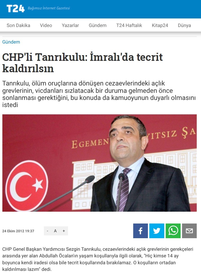 Hakkında ''terör örgütü propagandası yapmak" suçundan fezleke hazırlanan ve 2012 yılında teröristbaşı Apo'ya 'tecrit var' diyen CHP'li Sezgin Tanrıkulu, 28 şubatçı mahkuma sahip çıktı.