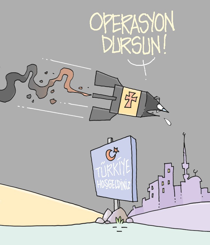 “Operasyon bitsin” diyenlere de cevap veren Erdoğan, net konuştu: “Madem terör örgütü ile bu kadar içli dışlısınız, madem teröristlerin gönlünü etmek uğruna Türkiye’nin müttefikliğini hiçe sayıyorsunuz. Size bir teklifimiz var biz sizler gibi değiliz. Öldürmek için değil yaşatmak için çalışırız. Suriye’deki sorunun en kestirme yolu bunun için de teklifimiz; tüm teröristler hemen bu gece silahlarını malzemelerini bırakıp belirlediğimiz güvenli bölgeden dışarı çıksınlar. O zaman harekatımız sona erer.”