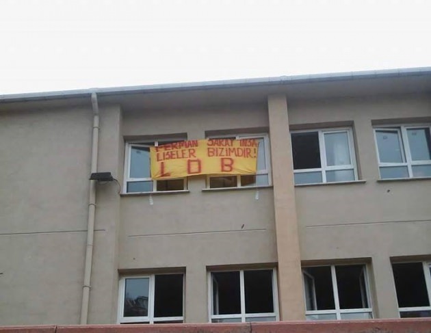 İstanbul'un Sultangazi ilçesi Gazi Mahallesi'nde MKLP'li teröristler, liseyi basarak sınıfa pankart astı.