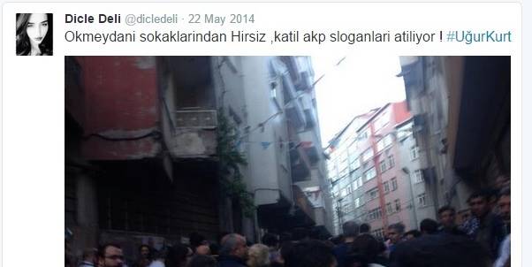 31 Mart 2014 tarihinde Savcı Mehmet Selim Kiraz’ı şehit eden teröristlere övgüler yağdıran Dicle Deli, “O iki güzel yürekli insana, devrim sözümüz olsun! #Bizdesiziseviyoruz #katilibiliyoruz” dediği görüldü. 22 Mayıs 2014’te yaptığı paylaşımında “Okmeydanı sokaklarından hırsız, katil AKP sloganları atılıyor” ifadelerini kullanan Dicle Deli, 31 Mayıs 2014’te attığı tweette ise “Halaya durduk. Ardından hırsız katil AKP sloganları atıldı” diyerek hükümete ağır hakaretlerde bulunmuş.