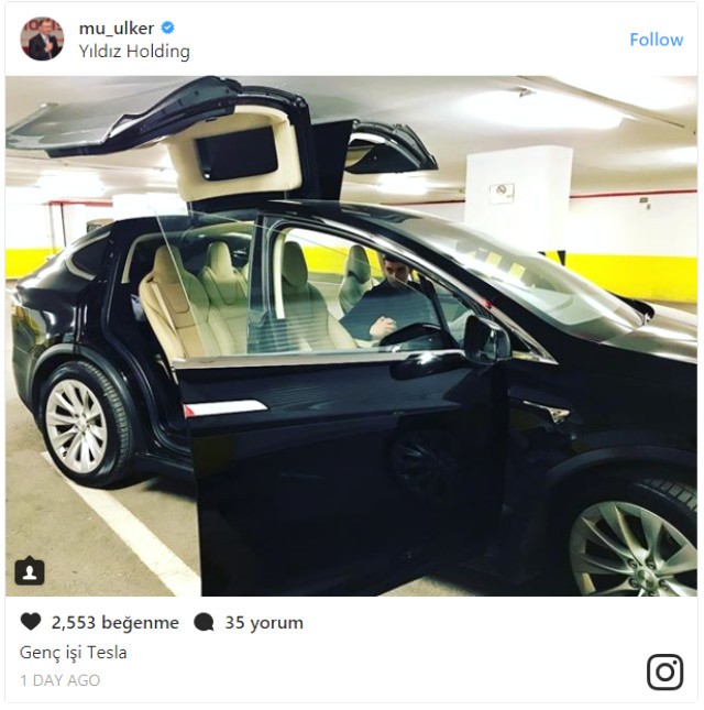 Murat Ülker sosyal medya hesabı üzerinden yaptığı Tesla Model X'li paylaşımının altına 'Genç işi Tesla' notunu düştü. Ülker paylaşımında Ülker Yönetim Kurulu üyesi Ahmet Özokur'u da etiketledi.