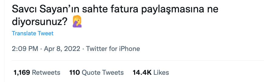 Sayan’ın konuya dair paylaştığı 7 Nisan tarihli faturanın orijinal olup olmadığını çeşitli araçlar yardımıyla tarayabiliriz.