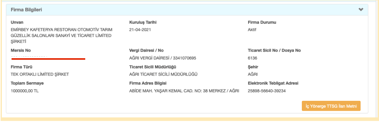 Mersis ve vergi numarasına göre belge orijinal
