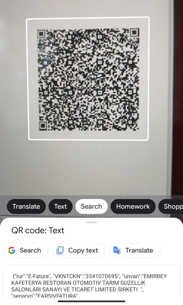 E-fatura’da yer alan QR kodu tarandığında da çıkan bilgiler, fatura ve firmayla tutarlı.