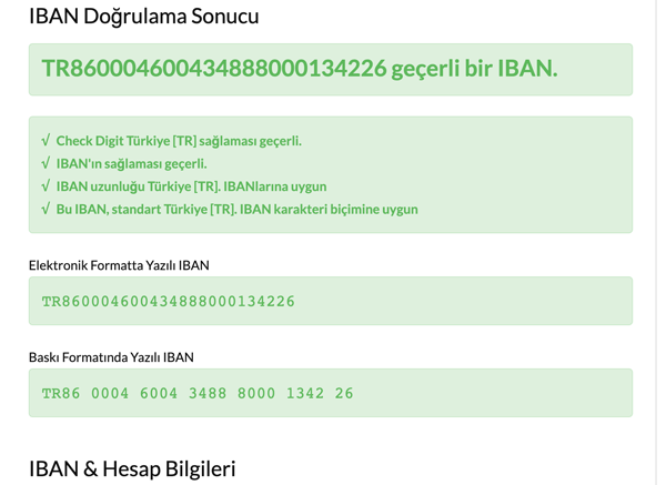 Faturanın üzerinde yer alan Emirbey Kafeterya Restoran Otomotiv Tarım Güzellik Salonları Sanayi ve Ticaret Limited Şirketi'ne ait olan IBAN kodunu incelediğimizde, numaranın IBAN yani para transferi kriterlerine uygun olduğu görülüyor. Yani hesap Türkiye’den ve geçerli bir IBAN numarasına ait.
