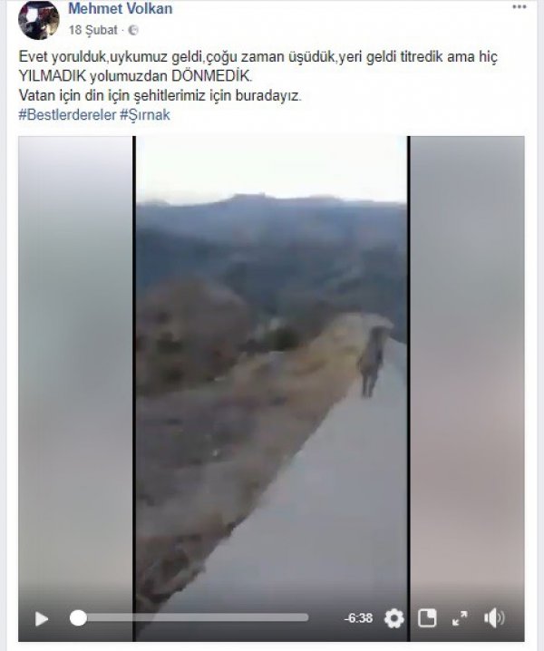 Terhisine 8 gün kala şehit olduğu öğrenilen Mehmet Volkan'ın bir süre önce sosyal medya hesabından “Evet yorulduk,uykumuz geldi, çoğu zaman üşüdük, yeri geldi titredik ama hiç yılmadık, yolumuzdan dönmedik. Vatan için din için şehitlerimiz için buradayız.” şeklinde paylaşım yaptığı ortaya çıktı.