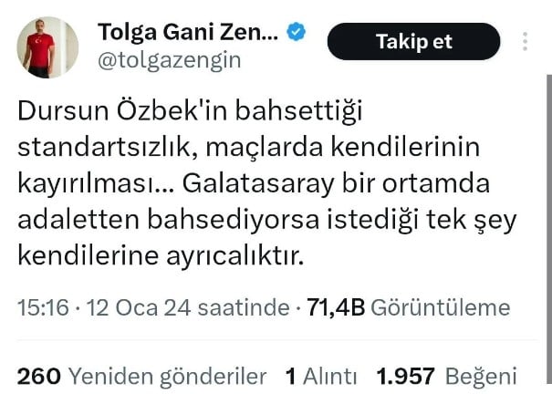 Zengin'in sosyal medyada Galatasaray aleyhine attığı tweetlerden ötürü sarı-kırmızılı taraftarlar tepki gösterdi.